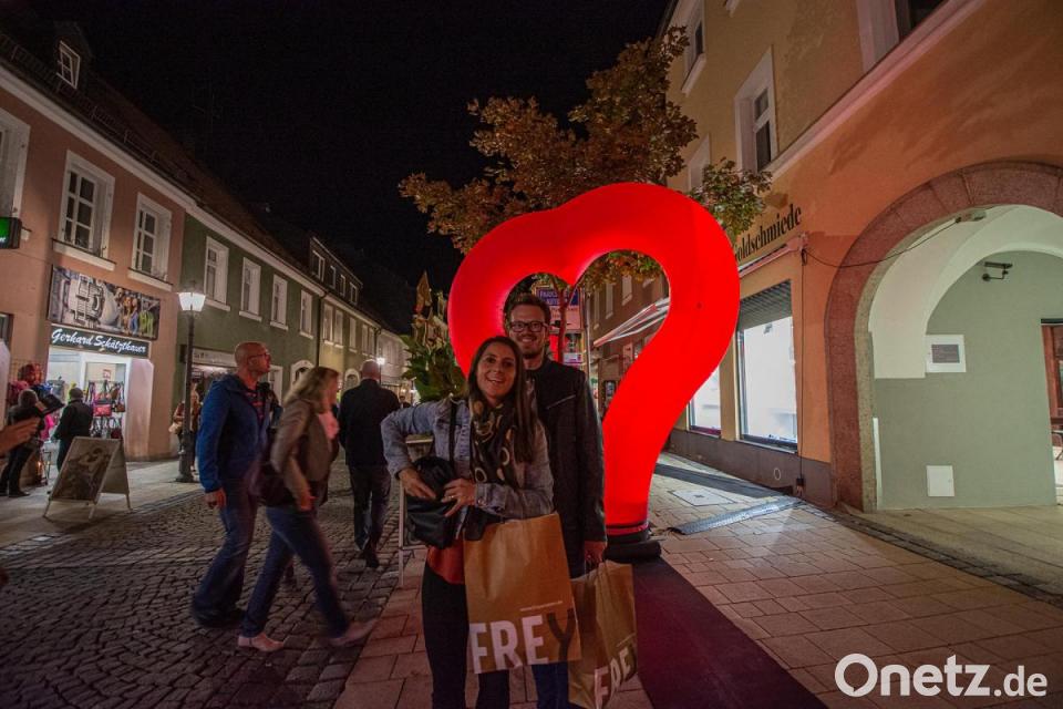 Die Lange Einkaufsnacht hat am Samstag rund 20 000 Besucher aus der Region und aus dem benachbarten Tschechien auf die Einkaufsmeile und ins KEC in Marktredwitz gelockt. "Die Stadt gab dabei eine strahlende Visitenkarte ab", teilte Mitorganisator Sebastian Macht mit. Den ganzen Abend zauberten die Lichtinseln mit ihren unterschiedlich beleuchteten Elementen eine besondere Stimmung in den Markt. Nicht nur große, rot beleuchtete Herzen illuminierten die Fußgängerzone und luden die Besucher dazu ein, ein Erinnerungsfoto zu machen. Auch leuchtende Kegel und riesige Bälle in den buntesten Farben peppten die Innenstadt auf.