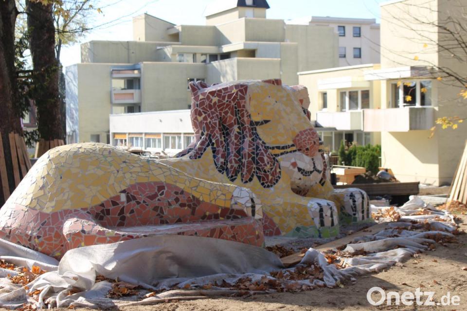 Während im Marktredwitzer Kirchpark noch kräftig gepflanzt, gebaut, gegraben und Erdreich bewegt wird, ist der Löwe, ein Kunstwerk, das vom Lions-Club Marktredwitz-Fichtelgebirge gespendet wurde, bereits fertig. Geschaffen von der einheimischen Künstlerin Annette Hähnlein, sorgt der Löwe für einen künstlerischen Touch im Park.