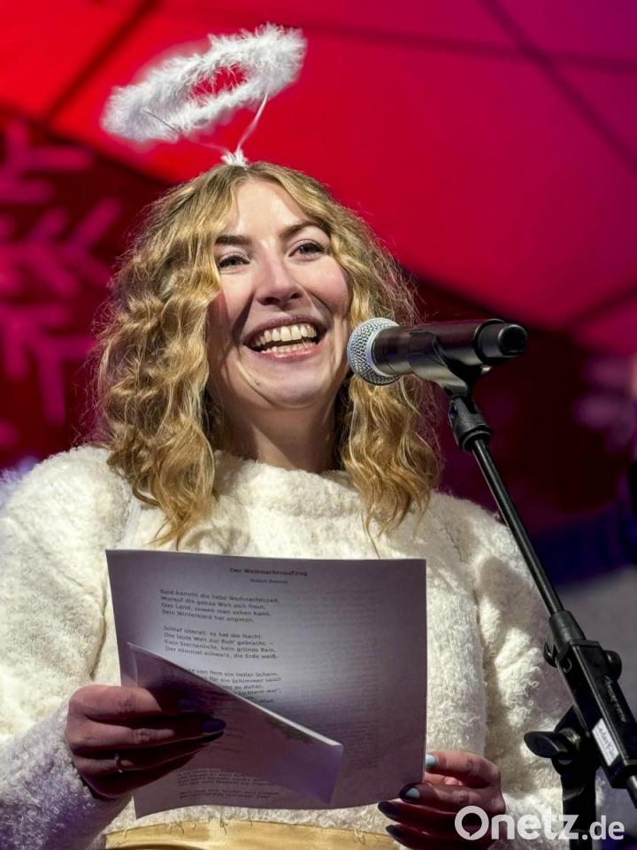 Martin Fuhrmann und Oliver Weigel hätten selbst jeweils ein gutes Christkind abgegeben. Bei der Eröffnung des Marktredwitzer Adventszaubers am Donnerstagabend strahlen der Organisator des Weihnachtsmarktes und der Oberbürgermeister um die Wette, während sie zusammen mit einem spontanen Bürgerchor das Weihnachtslied „O du fröhliche“ intonieren. Wäre da nicht Anna Westervelt. Die 29 Jahre alte Marktredwitzerin ist das echte Adventszauber-Christkind. Die junge Frau strahlt noch um einiges feierlicher als die beiden Herren im gesetzten Alter, die sie einrahmen.