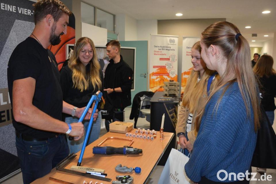 „Wir haben heuer unsere Messe um eine Stunde auf 14 Uhr verlängert“, wies Fröber auf die erweiterte Ausstellungszeit hin. „Am Anfang war es etwas mau, aber ab 10.30 Uhr hatten unsere Mädels und Jungs ausgeschlafen, dann kamen sie in Scharen." Ausdrücklich dankte er der Fichtelgebirgsrealschule für die tolle Unterstützung, die sie, so Fröber, „von anderen Schulen nicht hatten“. Unter den Eröffnungsgästen war auch Landrat Peter Berek, der auch ein paar Worte der Begrüßung sprach.