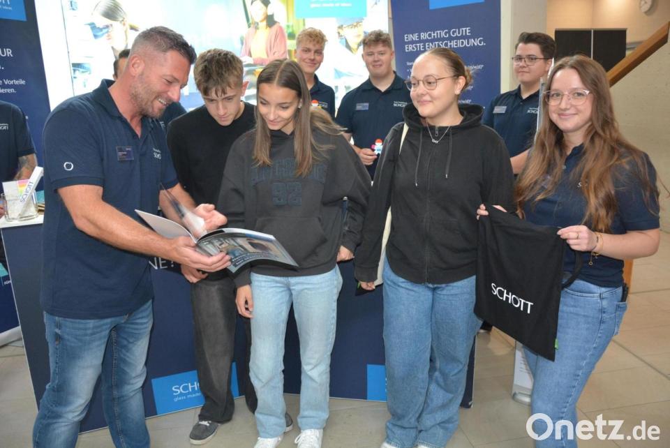 „Wir suchen für kommendes Jahr zwölf Auszubildende in acht verschiedenen Berufen für Selb und Tirschenreuth“, sagte Ausbildungsverantwortliche Uta Hartl (Firma Netzsch). Gleich mit sieben Auszubildenden war die Firma Schott aus Mitterteich angereist, damit diese auf Augenhöhe mit den jungen Interessenten sprechen können. Die Ausbilder Alina Kamm und Andre Brandner waren dabei. „Wir hatten Supergespräche und Anfragen nach Praktika“, sagte Brandner. Ausbildungsleiter Sebastian Prechtl (Firma Scherdel) berichtete ebenfalls von großem Interesse. „Wir suchen für kommendes Jahr 40 gewerbliche und 15 kaufmännische Auszubildende, heuer haben wir über fünfzig junge Leute eingestellt“, sagte Prechtl. Mit dabei auch die Firma IGZ Falkenberg mit Susanne Weig (Personalbetreuung): "Wir stellen im kommenden Jahr 15 Auszubildende ein, wobei hier schon erstes Interesse bekundet wurde." Nachwuchs sucht auch der Justizvollzug, nicht zuletzt wegen der geplanten Anlage in Marktredwitz. „Unsere Ausbildungsorte sind Amberg und Bayreuth“, sagte Justizsprecher Roland Liebl von der JVA Amberg. Drei junge Frauen aus Nagel zeigten sich schon mal interessiert.