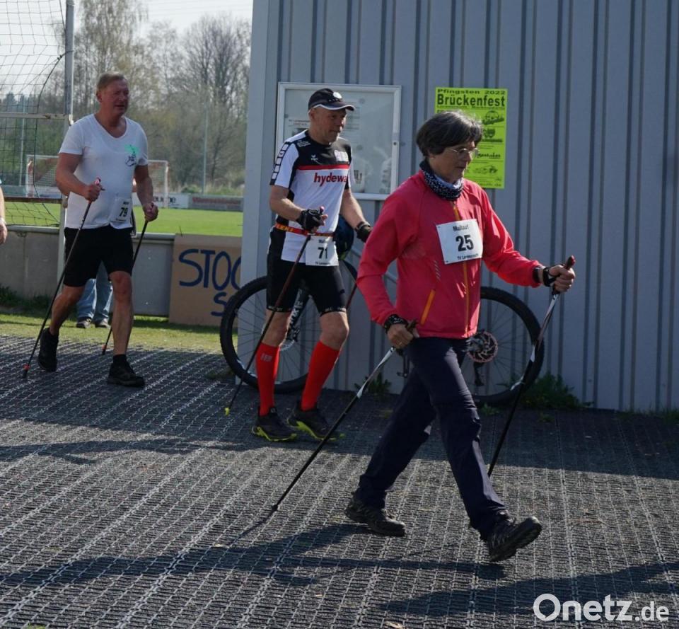 Wer anfangs vielleicht glaubte, dass es die Nordic-Walker recht ruhig angehen würden, wurde durch die Leistung von Herbert Günsche (Nordic-Walking-Team) eines Besseren belehrt: Der 75-Jährige absolvierte die Strecke in einer Bestzeit von 1:15:30, gerade mal zwei Minuten mehr als beim langsamsten Starter des Viertelmarathons. Dahinter folgten Karl Röhrig (M55, 1:27:36, TC Arzberg) und Edda Paland (W55, 1:27:37). Das Damen-Trio der "Schirndinger Stockenten" war nach einer Stunde und 31 Minuten im Ziel. Die 4800-Meter-Sprintstrecke absolvierten sieben Starter. Robin Matzke (U18) war in 24 Minuten zurück, Gerhard Raab (M60, 25:21) und Marian Matzke (M55, 25:41) landeten dahinter.
