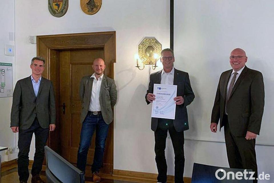 Aber auch im Rückblick auf das zurückliegende Vierteljahrhundert fänden sich viele beeindruckende Projekte: Unter anderem der Abriss der „Chemischen Fabrik“, der Neubau des Kösseine-Einkaufs-Centrums, der Rückbau der Maschinenfabrik Meyer, die grenzüberschreitende Gartenschau 2006 mit dem Teil- und schließlich Gesamtabriss der Benker-Fabrik und die Sanierung des Kirchparks. Oberbürgermeister Oliver Weigel und die beiden Stewog-Geschäftsführer Stefan Büttner und Mario Wuttke dankten Alexander Rieß für sein großes Engagement.