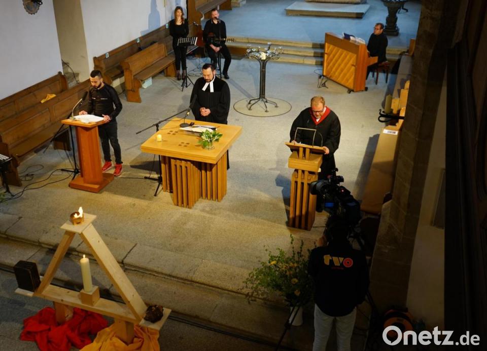 Für die Gottesdienstbesucher war an diesem Abend quasi schon Wochenende, denn TVO will in seiner Sendereihe von einem Gottesdienst zum Dreifaltigkeitssonntag Trinitatis berichten. Und so gestalteten Pfarrer Klaus Wening und Prädikant Michael Waldenmayer die Andacht eben so, als wenn es schon Sonntagvormittag wäre. Fritz Hatter und Ahmed Al-Fayej hatten den Part der Lesebeiträge übernommen. Das Thema „Dreieinigkeit Gottes“ stand im Mittelpunkt der Liturgie. „Nur wer brennt, kann andere entzünden. Gott brennt für seine Menschheit, lassen wir uns von ihm entfachen“, lautete die Aufforderung an die Anwesenden.