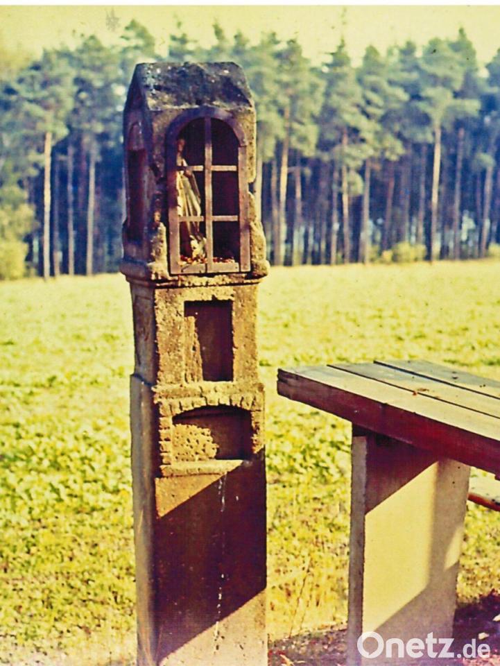 Der Massenrichter Heimatchronist Georg Luber beschrieb das Taucher-Marterl 1984 in der Festschrift zum 100-Jährigen der Freiwilligen Feuerwehr: „Das Tauchermarterl steht am Kirchsteig von Rödlas nach Ehenfeld beim heutigen Aussichtsturm. Der 1,55 Meter hohe Sandstein trägt in einer vergitterten Nische eine Figur des hl. Sebastian und an der Seite die Inschrift: 1843 G.W.. Es wurde errichtet von Wisgickl, Rödlas Haus Nummer 3 (Taucher), weil sich Georg Wisgickl dort beim Streufahren den Fuß gebrochen haben soll.“ Als Alfred Härtl im Jahre 2000 in seinem Buch „Orte der Besinnung“ sämtliche Marterl im Hirschauer Stadtgebiet erfasste, fehlte eines – das Taucher-Marterl. Es war schlichtweg verlorengegangen. Nicht verloren gegangen, sondern aus dem Bildstock entwendet worden war in früheren Jahren die Figur des hl. Sebastian. Sie war durch eine aus Altötting stammende Marienstatue ersetzt worden.