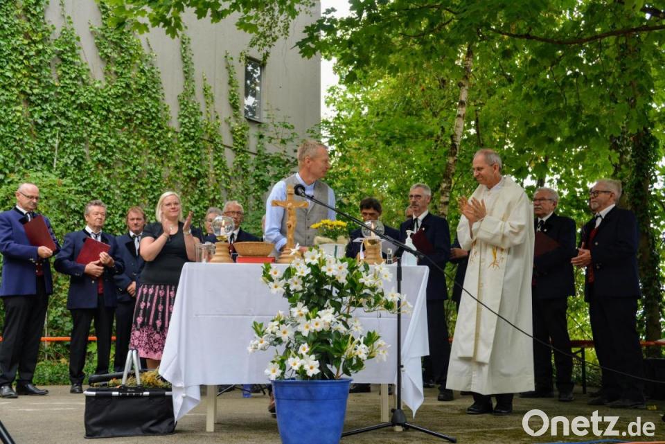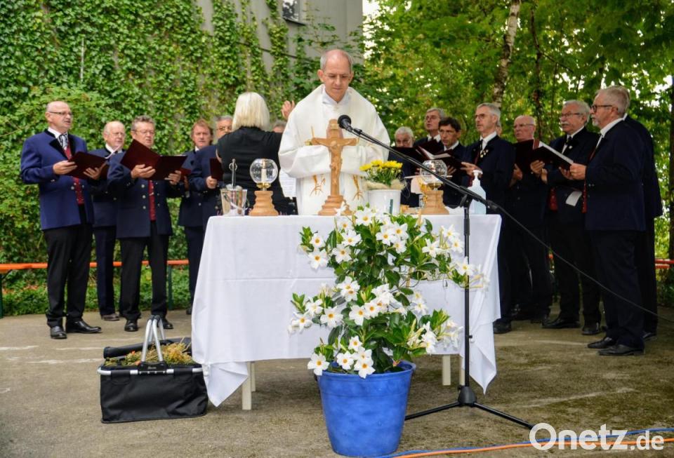 Im Schatten der hohen Bäume veranstaltete nach zwei Jahren Corona-Pause der Oberpfälzer Waldverein Massenricht wieder sein traditionelles Turmfest an Mariä Himmelfahrt. Es begann mit einem feierlichen Gottesdienst am Fuße des Rödlaser Aussichtsturms, den zum ersten Mal Pfarrer Johann Hofmann zelebrierte. In seiner Predigt bezeichnete der Geistliche Maria als Wegweiserin für die Christen, nach der sie ihr Leben und den Umgang mit anderen Menschen ausrichten können. Musikalisch begleitet wurde die Messfeier vom Männerchor Ehenfeld, unter der Leitung von Saskia Krügelstein. Nach dem Segnen der Kräuterbuschen beendeten die Sänger mit dem Lied „Segne du Maria“ die Messe. Viele Gottesdienstbesucher stimmten in das Lied ein.