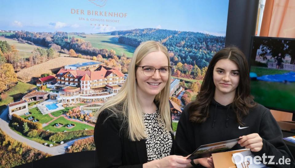 Die Allgemeine Ortskrankenkasse lockt die jungen Leute mit dem Angebot eines dualen Studiums und mit einer Ausbildung zur Sozialversicherungsfachangestellten. Am Stand des Hotels Birkenhof in Hofenstetten standen Personalreferentin Kerstin Erndt und Azubi Jasmin Altmann, die die Ausbildungsberufe in der Küche, im Restaurant und in der Verwaltung des Sternehotels vorstellten.