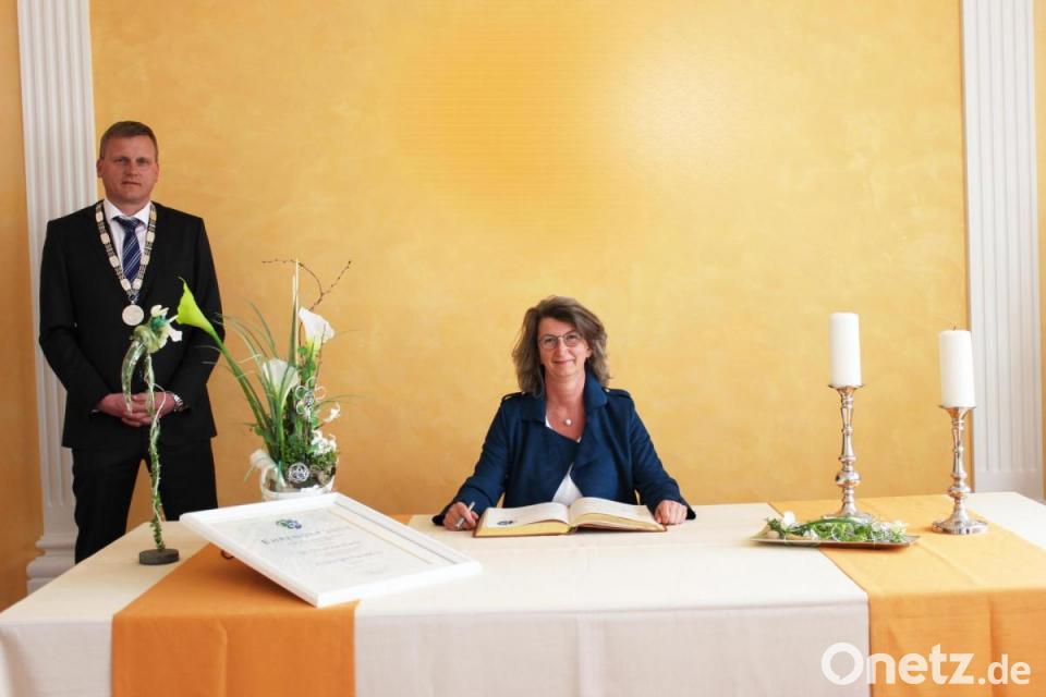 Seit 2002 engagierte sie sich für Maxhütte-Haidhof. „Aus gegebenem Anlass können wir Dir heute jetzt erst diese Auszeichnung übergeben. Von Mai 2008 bis April 2020 hast Du als Bürgermeisterin die Geschicke in Maxhütte-Haidhof gelenkt und hast Dich mit aller Kraft für unsere Stadt eingesetzt. Wir, und damit meine ich den letzten und den jetzigen Stadtrat, zollen Dir hohen Respekt, was Du alles geleistet hast“, dankte ihr Rudolf Seidl auch im Namen der Gemeinde. Sozusagen als ihre „letzte Amtshandlung“ trug sich Susanne Plank in das Goldene Buch der Stadt Maxhütte-Haidhof mit einer Widmung ein.