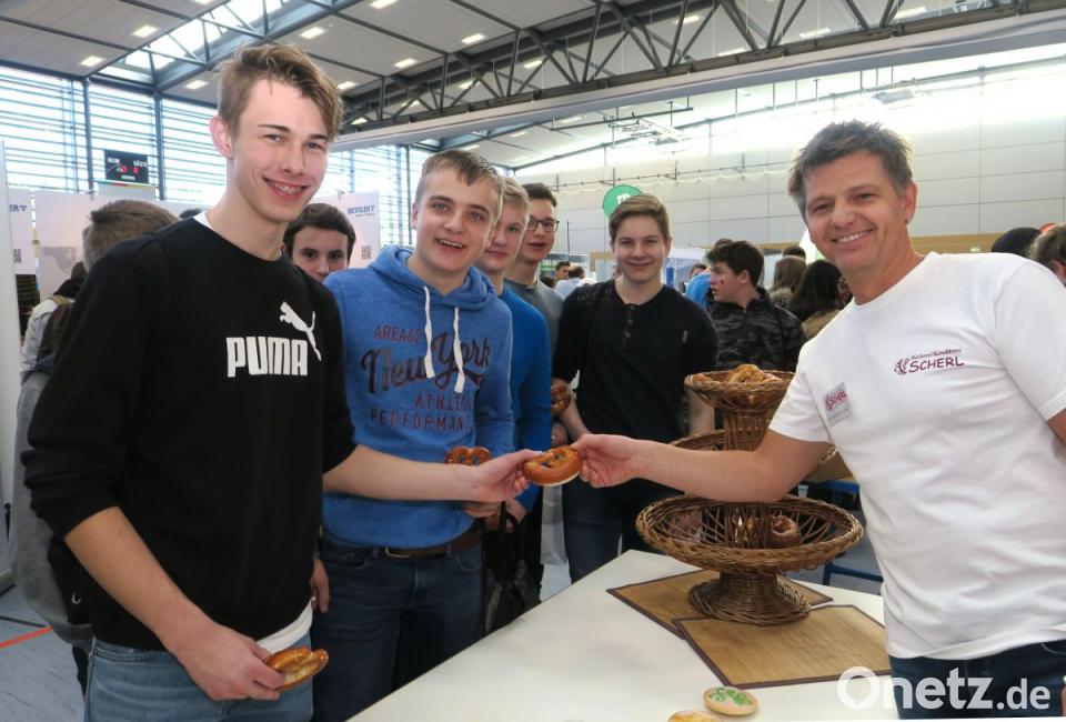 250 Amerikaner und 300 Brezen reichte Kurt Scherl während der Bildungsmesse kostenlos über den Tisch. Die Backwaren des Schwandorfer Bäckermeisters gingen weg wie die warmen Semmeln. Über den Andrang freute sich auch Innungsvorsitzender und Kreishandwerksmeister Christian Glaab. Seine leise Hoffnung: "Vielleicht bleibt der eine oder andere Lehrling hängen". Auch Tom Seidl von der Naabtal-Realschule Nabburg schaute mit seinen Klassenkameraden am Bäckerstand vorbei und zeigte sich beeindruckt vom "breit gefächerten Angebot" der Ausstellung, die die gesamte Bandbreite der beruflichen und schulischen Aus- und Fortbildung abdeckte.