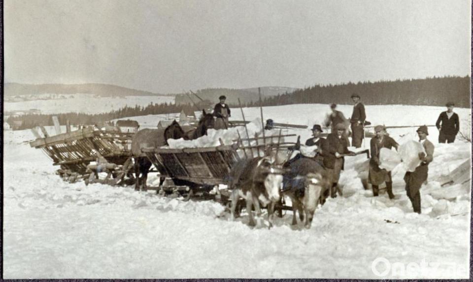 Mehlmeisel/Unterlind. (gis) Wer sich nach Feierabend ein kaltes Bier aus dem Kühlschrank nimmt, wird wohl kaum nachvollziehen können, welche Knochenarbeit es früher war, den edlen Gerstensaft bis in den Sommer hinein zu kühlen – mit Eisblöcken, die aus den Weihern gesägt wurden. Motorsägen, die die Arbeit erleichtert hätten, waren noch längst nicht erfunden. Ein Foto aus dem reichen Archiv von Hobby-Heimatforscher und Chronist Josef Wiche, aufgenommen um den Ersten Weltkrieg, zeigt diese mühselige Tätigkeit am Unterlinder Hammerweiher.