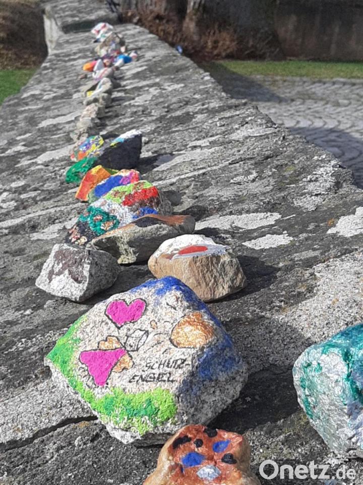 Viele kleine und große Steine - von kleinen und großen Leuten mit Herzen, Schutzengeln, Schmettlingen und Blumen gemalt - schmücken die alte Steinmauer vor dem Hammerkirchl als Zeichen für das Miteinander in der Coronakrise. Initiiert wurde diese Aktion von Ramona Daubner und Corinna Tauber mit der Botschaft, dass wir „gemeinsam stark sind“. „Lasst die bunte Steineschlange wachsen“, fordern sie Erwachsene und Kinder auf, die sich weiterhin auf die spannende Suche nach passenden Steinen begeben und mit Stiften und Malkasten die beeindruckende Sammlung bereichern werden. Auch der Ort für diese Aktion – ganz in der Nähe der hilfreichen Mutter Gottes im Hammerkirchl – wurde ganz bewusst gewählt.