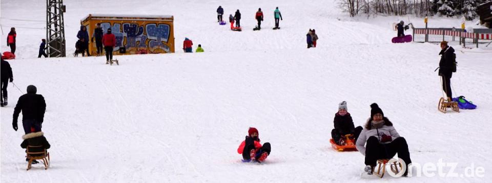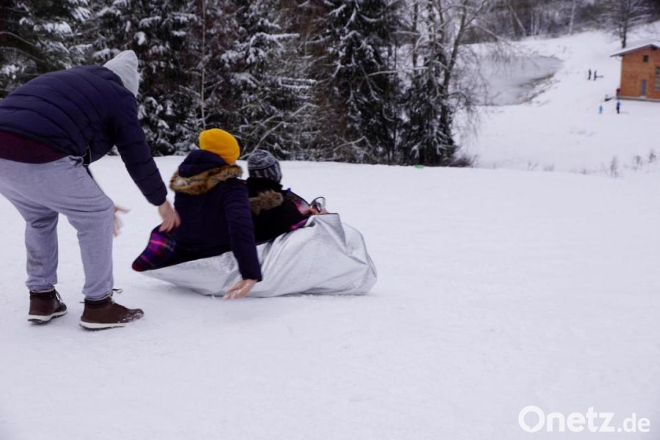 Der große Ansturm auf die Skilifte Klausenturm in Mehlmeisel und Tannenberg in Immenreuth blieb im Gegensatz zum vorhergehenden Wochenende an diesem Samstag aus. Obwohl wegen der Corona-Auflagen die Anlagen weiter nicht in Betrieb sind, nutzten viele Wintersportler die Pisten. In erster Linie waren es Eltern mit ihren Kindern, die mit diversen Wintersportgeräten bis hin zu großen Planen die Hänge für Schneevergnügen nutzten. Sportlich und gut für die Fitness war es allenthalben, wenn nach der Fahrt wieder der Hang zu Fuß erklommen werden musste. Das merkten besonders die Snowboardfahrer auf den Hauptabfahrten: Vor ihrem Vergnügen der Abfahrt stand zuerst das Schleppen des Brettes den Hang hinauf.