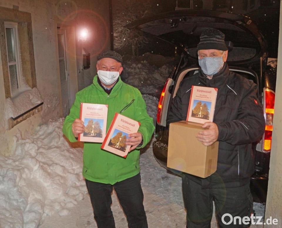 Nach über einer Stunde abenteuerlicher Fahrt durch Schneegestöber und über schneeverwehte Landstraßen traf Bodners Kombi dann gegen 19 Uhr am Pfarrhof ein. „Die Fahrt nach Mehlmeisel wollte kein Ende nehmen,“ war sein erster Satz, doch dann strahlte er sichtlich stolz, ein Buch präsentierend: „Da sind die Bücher. Sie sind sehr schön geworden.“