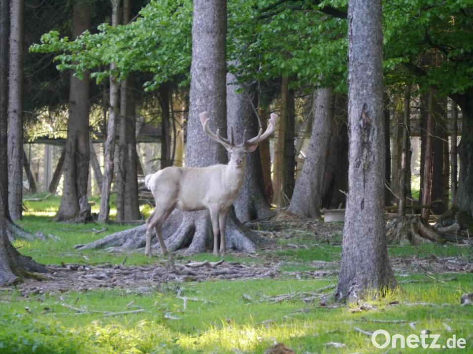 Den Rang ablaufen könnte ihnen das vor zwei Wochen geborene weiße Hirschkalb, das allerdings noch länger die Nähe seiner Mutter Mathilde suchten wird und sich kaum blicken lässt. Dafür aber präsentiert sich der stolze Vater, Hirsch Hubertus, gerne den Besuchern. Es wird noch dauern, bis er den Gästen seine Familie vorstellen wird.