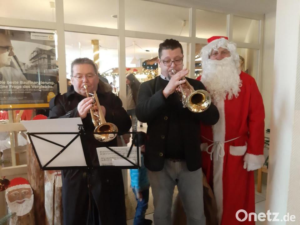 „Flusi“ hatte sich wie immer viele spannende Sachen für die Kinder ausgedacht. Gemütlich ging es in Weinlaube und Adventscafe zu bis das Christkind am Sonntagabend zur Verlosung attraktiver Preise einlud. Und natürlich hatte der Nikolaus nichts dagegen, wenn sich die Kinder aus dem großen mit vielen Überraschungen gefüllten Sack bedienten. Neu in der langjährigen Marktgeschichte war der spontane Auftritt des „Gemeinde-Trompetenduetts“ (Geschäftsstellenleiter Lothar Huber, links, und Thomas Kilgert, rechts) – die mit ihrem stimmungsvollen Spiel das „Sahnehäubchen“ auf dem Sonntagsnachmittag waren.