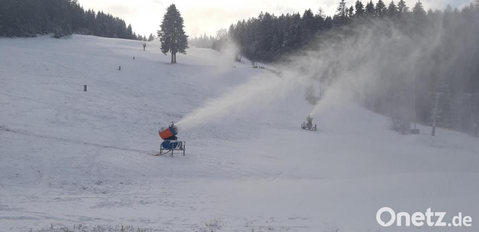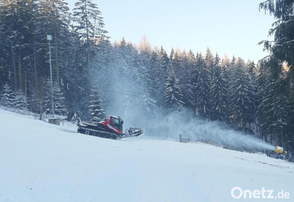 Sonne und glitzernder Pulverschnee verzauberten in den vergangenen Tagen die Landschaft im Fichtelgebirge in ein Wintermärchen. "Allerdings nicht genug 'weiße Pracht', um die Klausenlifte und das Familienland zum Ski-Opening in der Ochsenkopfregion am Freitag zu eröffnen – obwohl die Anlagen seit Montag dieser Woche mit fünf Schneekanonen beschneit werden“, sagt Bürgermeister Franz Tauber. Eine vorzeitige Öffnung macht keinen Sinn“, bestätigt auch der Betriebsleiter der Klausenlifte, Benjamin Müller. Derzeit wird die rechte Liftauffahrt beschneit und – soweit möglich - mit der Pistenraupe präpariert. „Bei sechs Grad minus oder darunter liefern die Schneekanonen am effizientesten“, informiert Verwaltungsleiter Lothar Huber auf Nachfrage und ergänzt: „Wenn wärmere Temperaturen angesagt sind, minimieren wir die Beschneiung aus Umweltgründen.“