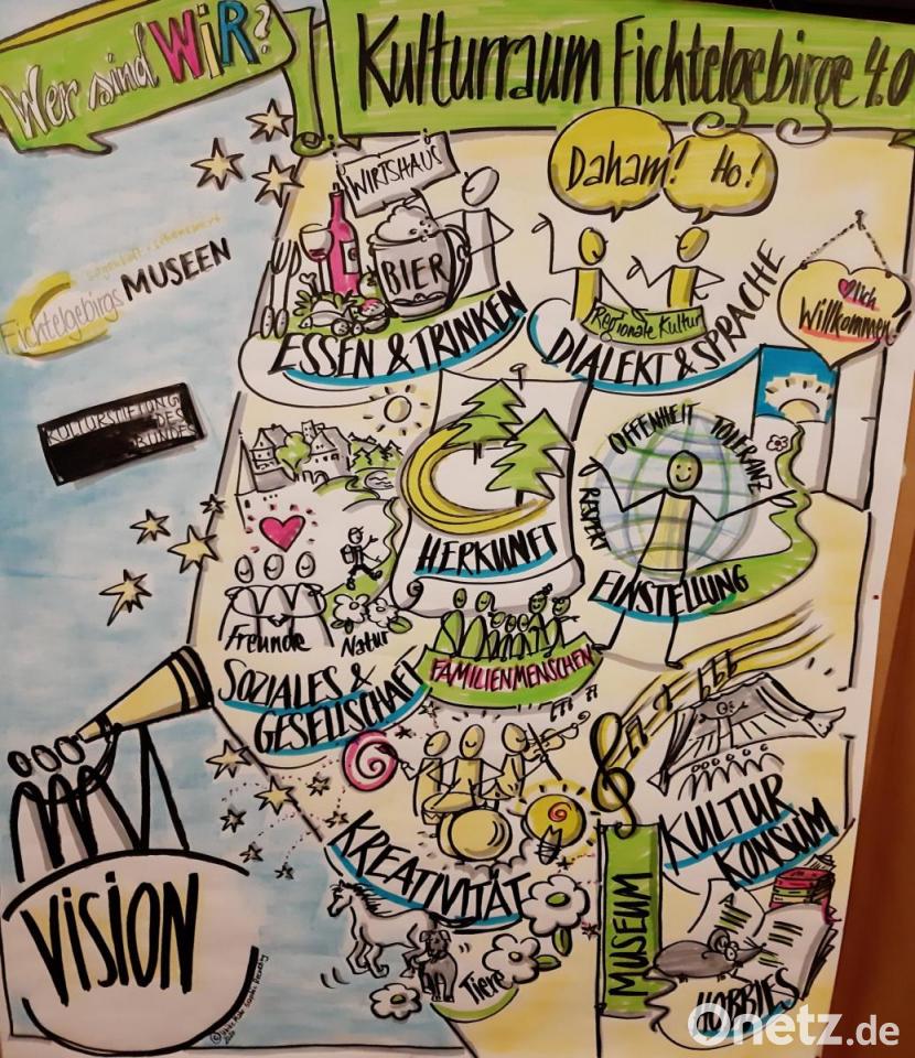 Eine Besucherin sitzt auf einen Polstersessel in der „guten Stube“ und überlegt, was für sie besonders typisch ist für das Fichtelgebirge: „Ein großes Herz!“ schreibt sie auf einen bereitliegenden Notizzettel und steckt ihn in eine der zahlreichen Plastikhüllen an einer großen Wand. Ihre Gedanken befinden sich in guter Gesellschaft mit „Freunde“, „Geselligkeit und Zoigl“, "ein Lächeln verschenken“ oder „ein Brückenschlag nach Tschechien“ und vielen anderen – nachzulesen beziehungsweise zu ergänzen bei einem Besuch der spannenden multimedialen Ausstellung „Kulturraum Fichtelgebirge 4.0" im Fichtelgebirgsmuseum.