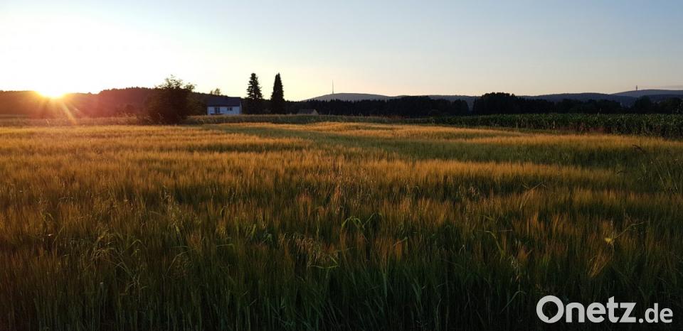 Ein Sonnenuntergang in Mehlmeisel tauchte dieses Feld in leuchtende Farben. Welch schöner Ausblick in Richtung Ochsenkopf und Schneeberg.
