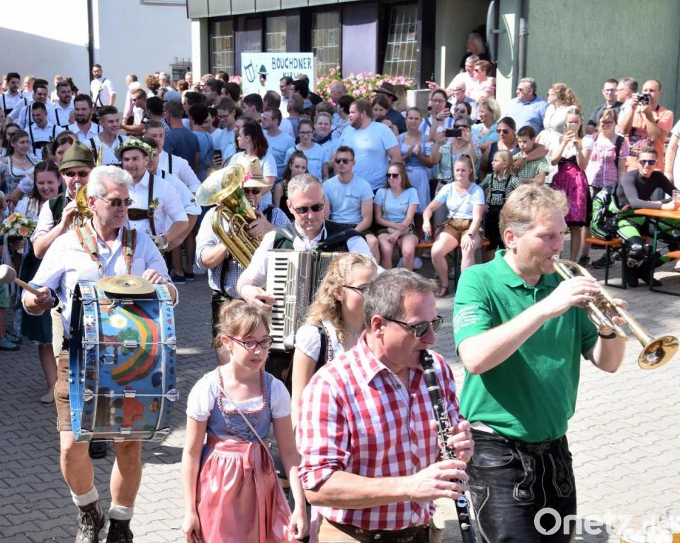Dass die Kirwatasche mit Schnoderhüpfl randvoll gefüllt ist, gehört im Dorf dazu. "Wir sind immer richtig neugierig, was so alles von den jungen Leuten breit getreten und auch manchen Nachbarn in die Maß gespuckt wird", hieß es am Rande. Da wurde im Dreizeiler der überbreite Rasenmäher durch das Dorf geschoben, der nicht mehr durch das Gartentürl passt, und die Weißwurst-Party in Friebertsheim gelobt.