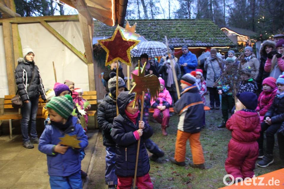 Die Kemnather Vereine hatten für ihre kleinen Besucher ein spezielles Programm vorbereitet. Den ganzen Nachmittag konnten sich die Kinder in der Märchenburg Geschichten vorlesen lassen. Höhepunkt war der große Auftritt der Kleinen des Kindergartens St. Margareta, die einen Sternentanz und Lieder vortrugen. Das schien auch dem Nikolaus gefallen zu haben, der sich mit Glockenläuten am Adventsmarkt ankündigte und die Kinder mit süßen Geschenken erfreute. Zum Ausklang des Adventsmarkts spielte das Buchberg-Echo.
