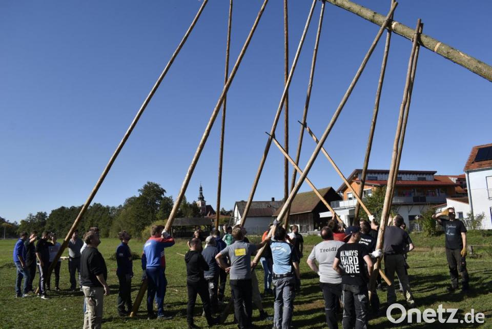 Vor dem Einstieg in ihr großes Fest gedachten die Michelfelder Kirwaleit' am Freitagabend in der Asam-Kirche des verstorbenen Burschen Michael Ziegler. Den Kirwabaum holten sie am Samstag aus dem Wald von Johannes Deinzer. Unter dem Kommando von Matthias Gsell stellten die Kirwaboum das 36 Meter lange Prachtstück in eineinhalb Stunden auf - ein hartes Stück Arbeit an fünf Schwalben. Die Abendmesse zur Kirchweih gestalteten die Michelfelder Moila musikalisch mit. Anschließend ging es dann auf dem Festplatz am Brühl hoch her. Livemusik der Gseea Wepsn und eine Happy Hour sorgten für Stimmung bis spät in die Nacht.