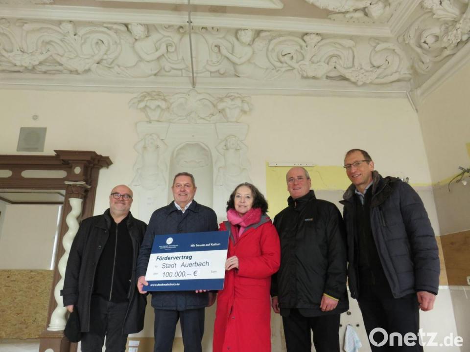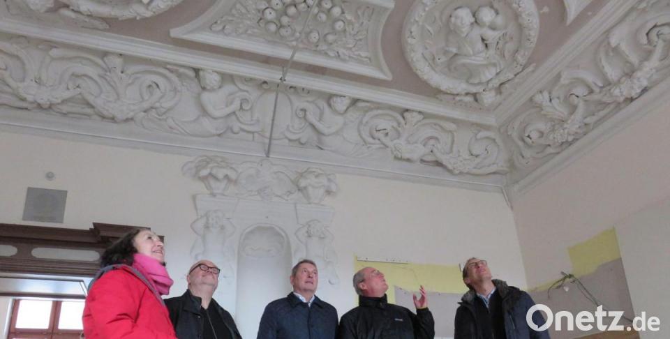 Wie die Stadt weiter berichtet, übergab Petra Schöllhorn vom Ortskuratorium Fränkische Stadtbaumeister, als regionale Vertreterin der DSD, den Fördervertrag dieser Tage symbolisch an Ersten Bürgermeister Joachim Neuß. Architekt Peter Brückner, der dem Termin beiwohnte, zeigte sich begeistert von den Stuckdecken in Michelfeld. Diese seien von herausragender Güte wie man sie in Bayern nur selten fände. Erfreut zeigten sich auch Gerhard Reile und Peter Miltenberger von der Regens-Wagner-Stiftung Michelfeld.