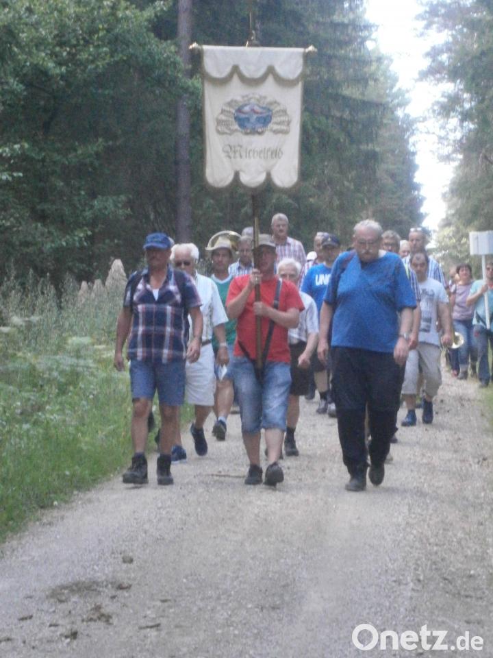 Den Nachhauseweg traten am Sonntag 34 Pilger an. Nach der Mittagspause in Horlach stand traditionell der Kreuzweg entlang der 14 Stationen im Veldensteiner Forst zum Schafsteg unterhalb von Nasnitz auf dem Programm. Dabei wurden die Wallfahrer von der Michelfelder Blasmusik begleitet.
