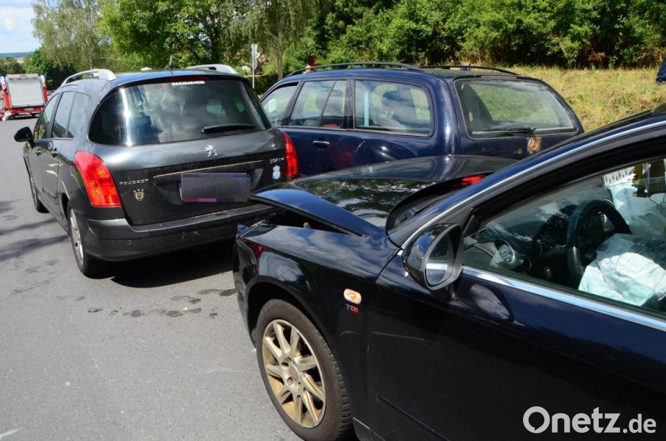 Gegen 12.30 Uhr erkannte eine hinter dem Peugeot fahrende 41-jährige Mercedes-Kombifahrerin den Abbiegevorgang und hielt ebenfalls an. Allerdings krachte dann eine 29-Jährige mit ihrem Seat-Kombi in den Mercedes und schob diesen auf den Vordermann. Glücklicherweise wurde, dank der ausgelösten Airbags, niemand verletzt und das BRK-Team konnte ohne Patienten abziehen. Die Feuerwehr aus Michldorf regelte den Verkehr auf der vielbefahrenen Straße. Laut der Beamten der Polizeiinspektion Vohenstrauß entstand ein Schaden in Höhe von 5000 Euro, da es sich um ältere Fahrzeuge handelte.