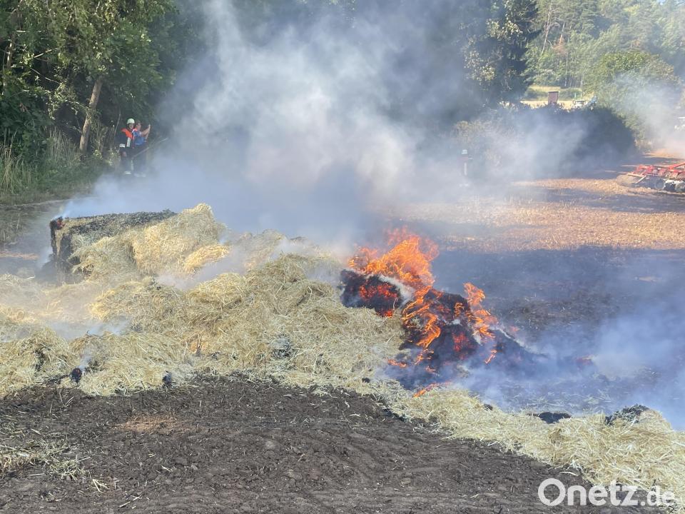 Bei Erntearbeiten kam es am Samstag zu einem größeren Flächenbrand in der Nähe von Mittelreinbach bei Neukirchen. Da der Anrufer mitgeteilt hatte, dass der angrenzende Wald bereits am Rand betroffen war, alarmierte die Integrierte Leitstellte Oberpfalz-Nord gegen 15.45 Uhr mehrere Feuerwehren rund um den Ort. Auch Kreisbrandrat Christof Strobl, Kreisbrandinspektor Hans Sperber, die Kreisbrandmeister Norbert Sperber und Thorsten Jobst, sowie die UG-ÖEL und die Fachgruppe Drohne (Feuerwehr Kümmersbruck) waren dabei. Beim Eintreffen der ersten Einsatzkräfte hatte das Feuer bereits auf ein angrenzendes Feld sowie den Rand des Waldes übergegriffen. Sofort begannen die Löscharbeiten, um den Brand einzudämmen. Zahlreiche Landwirte kamen mit ihren mit Wasser gefüllten Pumpfässern zur Einsatzstelle, um die Einsatzkräfte zu unterstützen. "Ohne die Hilfe der Landwirte hätten wir eine Ausbreitung nicht so schnell verhindern können", sagte Einsatzleiter KBI Hans Sperber. Auch die bereits gepressten Heuballen auf dem Feld hatten Feuer gefangen. Die Einsatzkräfte zogen sie auseinander, um sie zu löschen. Im Einsatz waren rund 70 Einsatzkräfte der Feuerwehren, der Rettungsdienst kam mit einem Rettungswagen und dem Einsatzleiter nach Mittelreinbach. Nach den Löscharbeiten wurden die Ränder des Feldes nochmal mit einer Wärmebildkamera kontrolliert. Die Landwirte pflügten den Acker um. Im Einsatz waren die Feuerwehren Holnstein-Mittelreinbach, Edelsfeld, Sigras, Weißenberg, Steinling, Schmidtstadt, Lehendorf, Etzelwang, Kirchenreinbach, Röckenricht, Königstein, Eschenfelden, Achtel, Hirschbach und Neukirchen.
