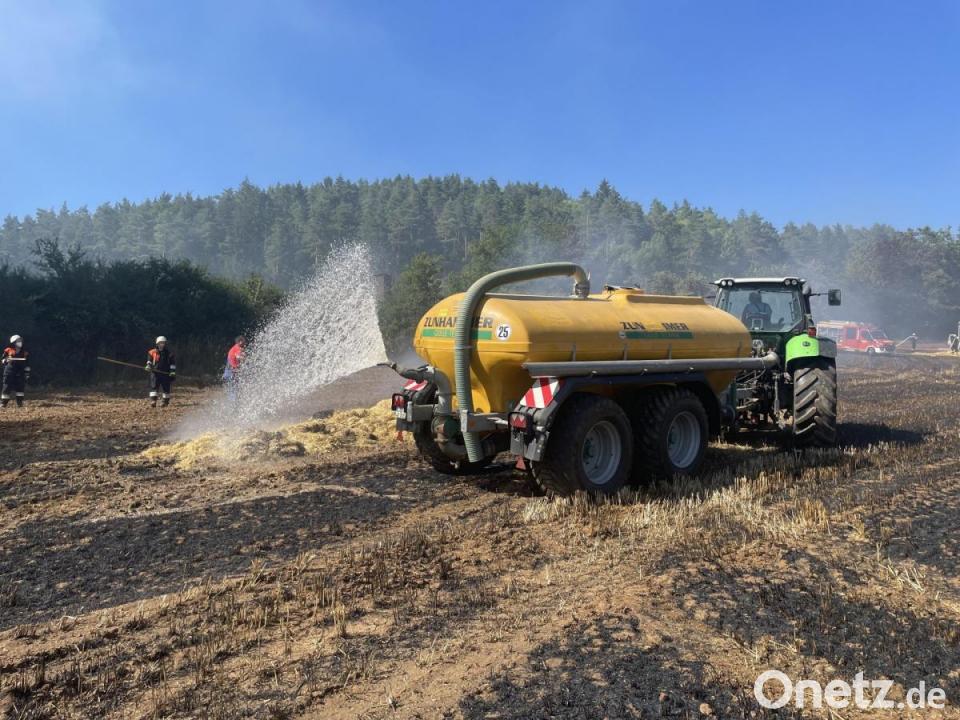 Bei einem Feldbrand in Mittelreinbach bei Neukirchen im Landkreis Amberg-Sulzbach haben Landwirte mit ihren Pumpfässern eingegriffen.