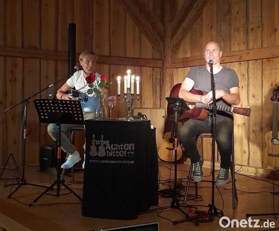 „Du entschuldige – i kenn di“ sangen und summten über 200 Leute im Stodel des Aiherlhofs in Mitterauerbach. Rainer Kapalla und Roland Winkler – das Duo „Zwoa Achterl – bitte“ – brauchten auf der kleinen Bühne nur die ersten Takte mit ihren Gitarren anspielen, und schon schwelgten alle Anwesenden in Erinnerungen. Die Musiker begeisterten das Publikum mit Songs von STS, Rainhard Fendrich, Wolfgang Ambros, der Spider Murphy Gang und ihren eigenen Liedern.