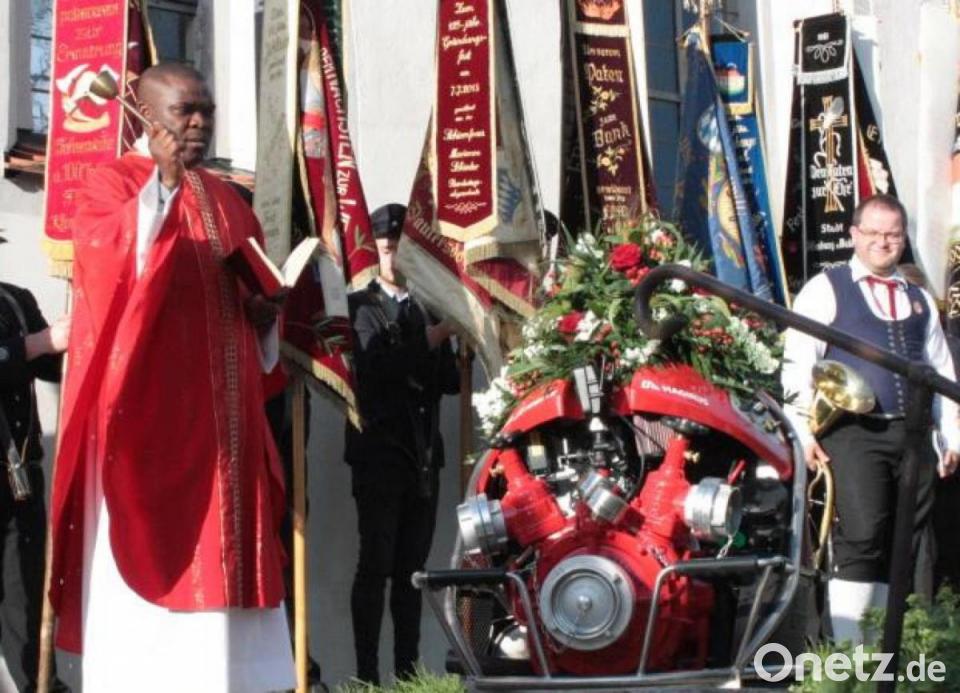 Nach einem stattlichen Festzug ging es zum Gottesdienst im Freien vor die Filialkirche „Unserer Lieben Frau“ in Mitterauerbach. Zelebriert wurde die Messe von Pfarrer Emmanuel Okoro. Er nahm in der Predigt Bezug auf den Märtyrer Florian, der auch in brenzligen Situationen auf Gott vertraute. Der Geistliche dankte den ehrenamtlich engagierten Feuerwehrfrauen und -männern für ihren Einsatz.