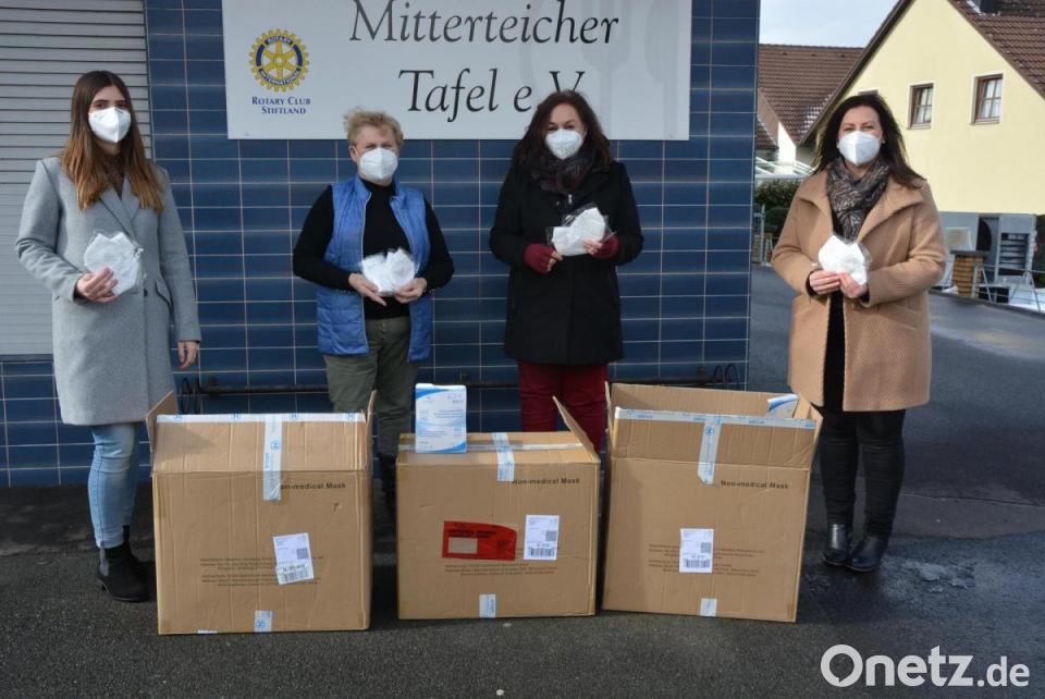 Große Überraschung für Tafel-Vorsitzende Nicole Fürst und Tafel-Leiterin Anni Riedl: Am Mittwochmittag besuchten Lichtblicke-Schirmherrin Claudia Grillmeier und Isabel Sommerer vom Landratsamt Tirschenreuth die Einrichtung in Mitterteich und überreichten 4500 FFP2-Masken für Tafelbezieher. Die Aktion Lichtblicke wolle gerade in diesen Zeiten schwächeren Bürgern eine Hilfestellung bieten, erklärte Grillmeier.