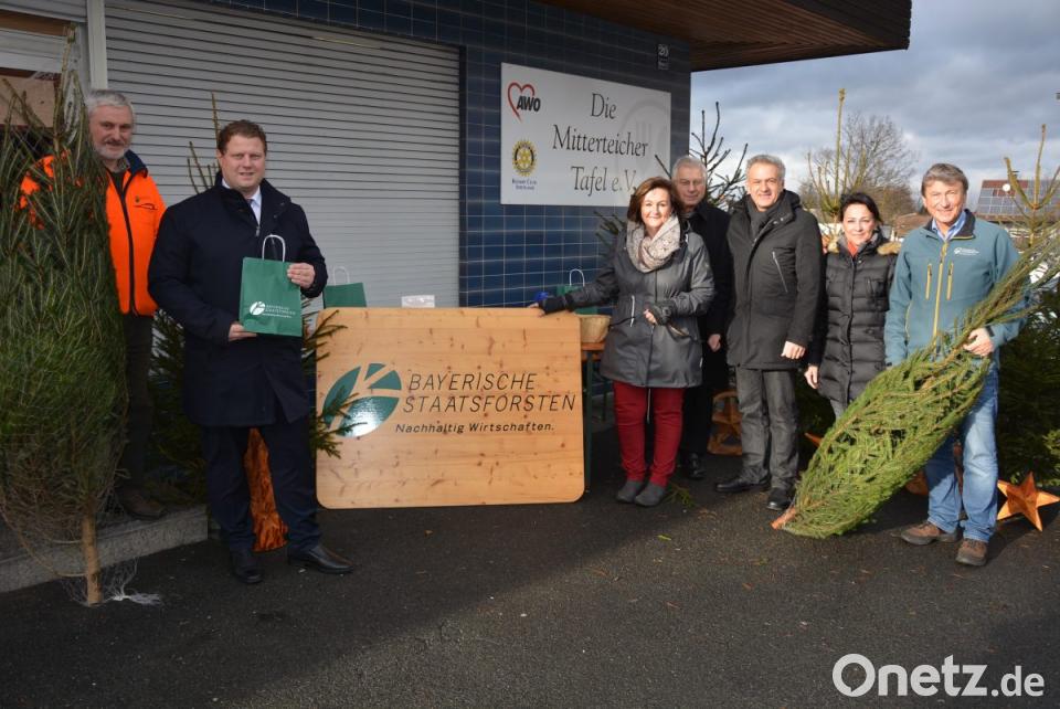 Die 55 Christbäume waren zuvor in einer Gemeinschaftsaktion der Angehörigen des Forstbetriebs waldfrisch geerntet worden. Die heimischen Fichten sollen in den Wohnzimmern der Familien ihren Platz finden, die bei der Mitterteicher Tafel einkaufen und Hilfe benötigen. "Ganz besonders freuen wir uns mit den Kindern und ihren Familien, die sonst keinen Weihnachtsbaum hätten. Wenn wir diesen Familien das Weihnachtsfest damit etwas verschönern, haben wir unser Ziel erreicht", sagte Schneider. Dank zollte er dem Sachverständigenbüro Edgar Wenisch in Konnersreuth, der jedes Jahr seine Maschinenhalle zum Christbaumverpacken zur Verfügung stellt.