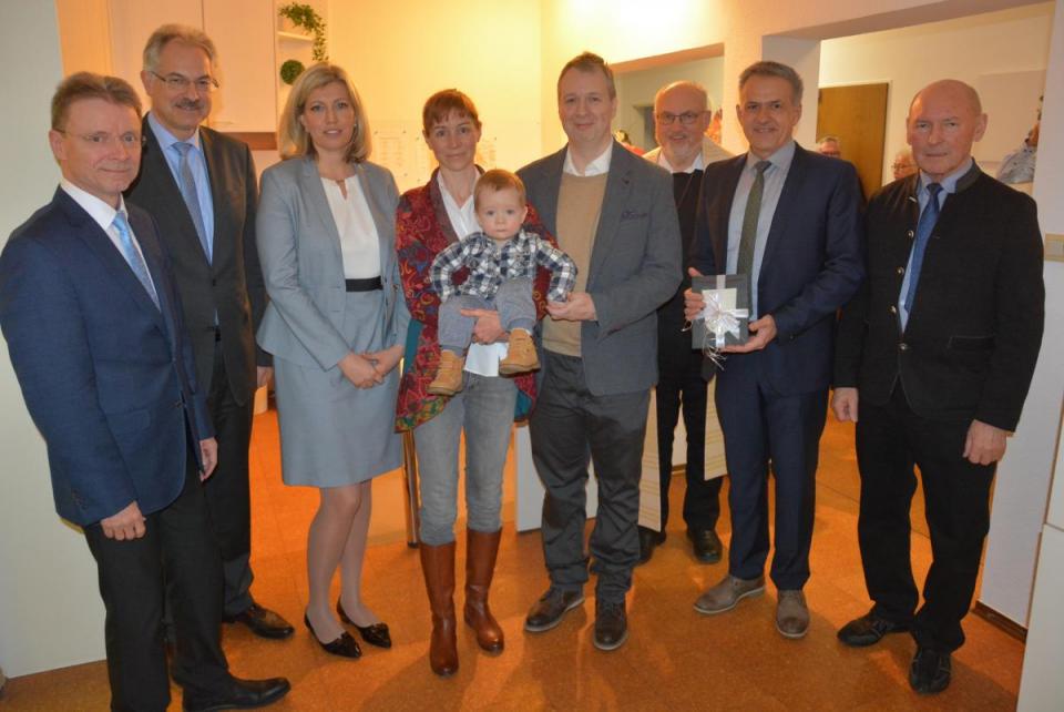 Den kirchlichen Segen erhielt jetzt die Gemeinschaftspraxis von Dr. Jana Wiesnerova und Dr. Zdenek Hess am Unteren Marktplatz 7. Bei der Feierstunde mit dabei waren (von links) Prokurist Manfred Tretter (Kliniken Nordoberpfalz AG), Geschäftsführer Martin Schmid (Kliniken Fichtelgebirge), Dr. Jana Wiesnerova, Ehefrau Barbora mit Sohn Theodor und Dr. Zdenek Hess, Bürgermeister Roland Grillmeier und Waldsassens 2. Bürgermeister Karlheinz Hoyer.