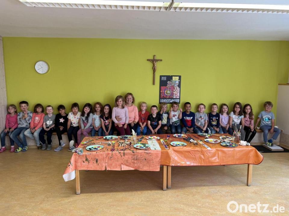 Künstlerin Angelika Sticht aus Tirschenreuth besuchte jetzt den Kindergarten St. Hedwig in Mitterteich. Gemeinsam mit den Vorschulkindern gestaltete sie ein Kunstwerk. "Aber zuerst verschaffte sie uns einen Überblick über die Geschichte der Kunst, beginnend bei der Höhlenmalerei der Steinzeitmenschen, über die großen Künstler wie Rembrandt, Leonardo da Vinci und Vincent van Gogh, hin zu den modernen Künstlern der heutigen Zeit wie Friedensreich Hundertwasser und Gerhard Richter", heißt es dazu in der Mitteilung.