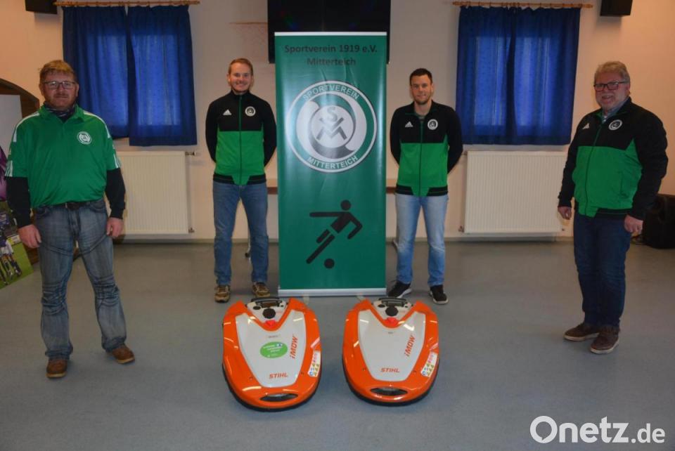 Ein vorweihnachtliches Geschenk bereitete jetzt dem SV Mitterteich dessen Förderverein. Er finanzierte den Kauf zweier Mähroboter im Gesamtwert von 5000 Euro. "Max und Moritz", so werden die beiden Roboter genannt, mähen das Rasenspielfeld des Landesligisten SV Mitterteich und halten das Gras auf optimalem Stand.