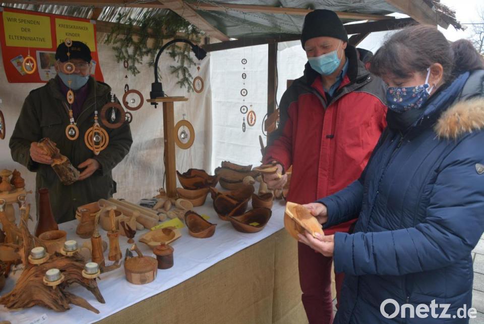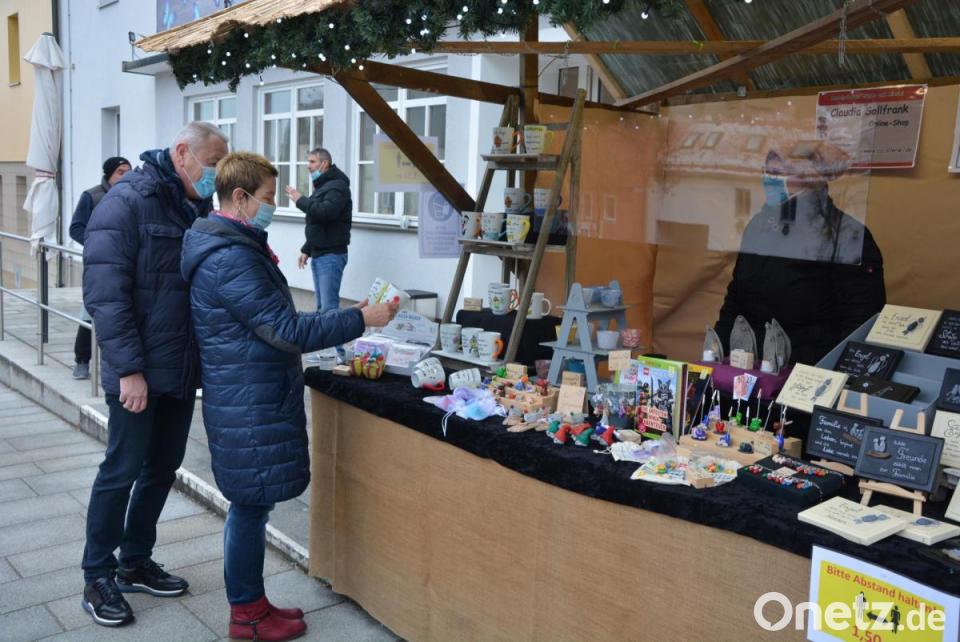 Anstelle des traditionellen Weihnachtsmarktes am Kirchplatz waren am Samstagnachmittag Verkaufsstände rund um beide Marktplätze verteilt. Vor größeren Menschenansammlungen blieb die Stadt verschont, zudem wurde sehr diszipliniert mit Maske und Abstand eingekauft. "Angesichts der Problematik hatten wir nicht mit diesem Interesse gerechnet", zog etwa Ludwig Doss, der mit handgefertigten Drechselarbeiten auf Kundschaft wartete, eine positive Bilanz.
