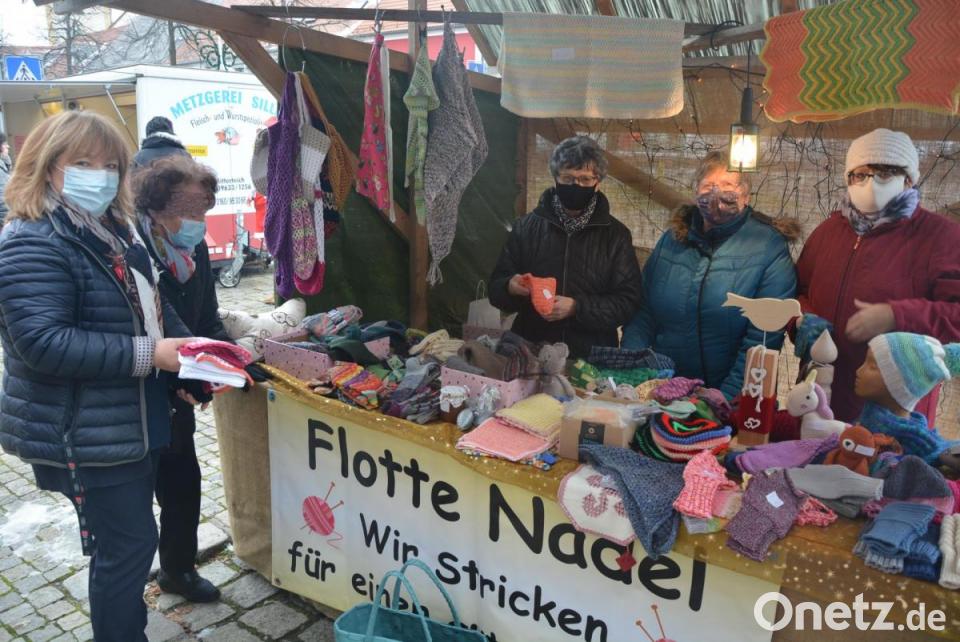 Für das leibliche Wohl wurden den Besucher Bratwürste, Käsewiener und Steaks von den Metzgereien Grillmeier und Siller angeboten. Am Oberen Markt warteten die Strickerinnen von den "Flotten Nadeln" auf Kundschaft. Bei ihnen gab es selbst gestrickte Socken, Handschuhe, Schals, Decken, Einkaufsnetze und Kuscheltiere, garantiert mit Liebe hergestellt, in großer Auswahl zu kaufen. Insgesamt 14 Strickerinnen arbeiten in der Gruppe regelmäßig mit. Auch die Damen waren durchaus angetan vom Interesse an ihrem Verkaufsstand. Metzgerei-Chefin Elke Siller meinte vielsagend zu den Oberpfalz-Medien, "es regnet nicht, aber es tröpfelt", und meinte damit den Absatz von Grillspezialitäten.