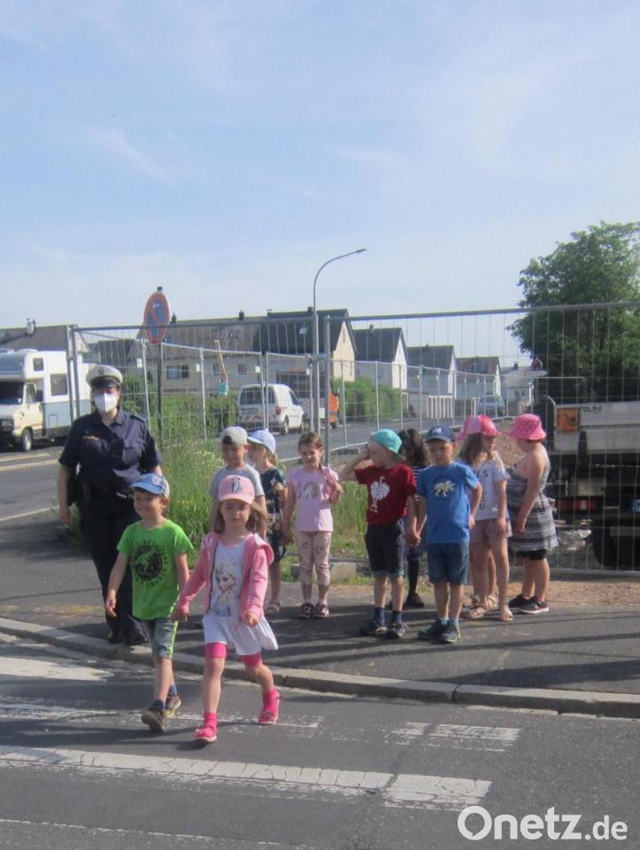 In der Verkehrserziehung lernten die Kinder zunächst theoretisch, wie sie die Straße richtig überqueren, sodass die herankommenden Autofahrer sie auch gut sehen können. Gemeinsam wurde dies gleich an einem aufgebauten Zebrastreifen im Kindergarten geübt.