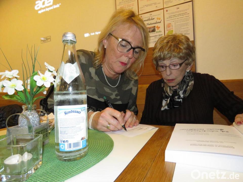 Immer wieder kamen Besucher im Laufe des Abends zu Annelee Woodstrom an den Tisch, wollten mit ihr sprechen, ihr die Hand drücken und ein Buch kaufen. Auch Reiner Summer las einige Passagen aus dem Werk vor, die Autorin selbst erzählte häufig frei weg aus ihrem Leben, darunter auch Episoden, die nicht im Buch stehen. Sehr still im Raum wurde es, als sie vom Ausharren im Luftschutzkeller in München berichtete. Während des Krieges seien ihr dort die Bomben regelrecht um die Ohren geflogen, unzählige Tote habe sie gesehen. Wiederholt fasste sich Annelee Woodstrom dabei an die Brust oder an den Hals, so als müsse sie sich heute noch davor schützen.