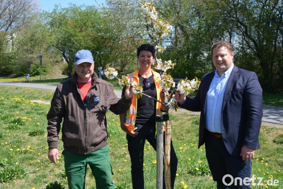 Die Stadt leiste schon seit langem einen aktiven Beitrag zum Natur- und Artenschutz, so Kilian. Ein Beispiel dafür sei das Umfeld des "Fit- & Fun-Parks": Entlang des dort vorbeiführenden Rad- und Fußwegs hat die Stadt vor Jahren 47 Bäume gepflanzt, die aktuell in ihren schönsten Farben erblühen. Zu finden sind etwa Apfel-, Birnen-, Kirsch- und Pflaumenbäumchen. "Die Streuobstwiese wird nur ein- bis zweimal im Jahr gemäht", sagte Kilian jetzt bei einem Ortstermin mit seiner Mitarbeiterin Brigitte Bassek und Zweitem Bürgermeister Stefan Grillmeier. Neben den Bäumen wurden am Rad- und Fußweg auch bienenfreundliche Sträucher gepflanzt, darunter Weidengewächse, Schlehdorn und Felsenbirne.