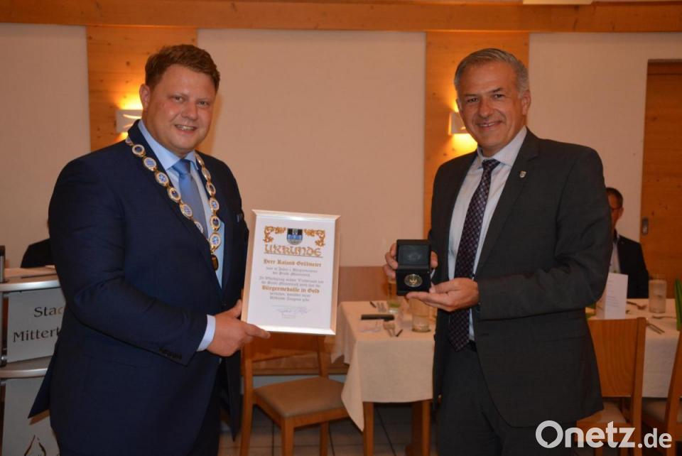Die erste Bürgermedaille in Gold erhielt der heutige Landrat Roland Grillmeier, der 18 Jahre lang als Bürgermeister die Geschicke der Stadt geprägt hat. „Du warst immer die treibende Kraft unserer Vorhaben in Mitterteich. Mit deiner Ideenvielfalt und Kreativität hast du Mitterteich zu dem gemacht, was es heute ist. Du hast Mitterteich zu einer Marke gemacht.“ Neben der Bürgermedaille in Gold gab es zusätzlich einen Whisky „Stonewood - The Bavarian Whisky 1818“. Ebenfalls die Bürgermedaille in Gold erhielten Luitgard Müller und Angelika Müller. Nachgereicht wird diese Auszeichnung an Dritten Bürgermeister Ernst Bayer, der dem Stadtrat seit 30 Jahren angehört. Bayer fehlte entschuldigt.