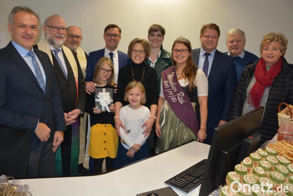 Zahlreiche Glückwünsche gab es für die Eröffnung der neuen Niederlassung der Anwalts- und Steuerkanzlei Bäumler, Bäumler & Partner. Im Bild (von links) Bürgermeister Roland Grillmeier, Pfarrer Martin Schlenk, Stadtpfarrer Anton Witt, Thomas Bäumler mit Ehefrau Marion und den Töchtern Luisa und Charlotte, Daniela Kotzbauer, „Weißbier-Resi“ Martina Bleistein, Zweiter Bürgermeister Stefan Grillmeier und die Vermieter Hans und Gabi Grillmeier.