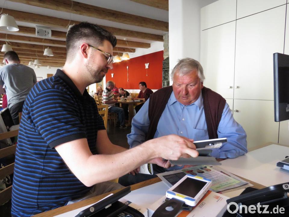 "Aber die können auch nicht mehr helfen. Also gehe ich jetzt nur noch zu meinen ansässigen Augenarzt hier", sagt er. Der Waldershofer lässt sich von Christian Kubitschek über ein digitales Speziallesegerät beraten. 500 Euro müsste man noch auf den Zuschuss der Krankenkassen draufzahlen. Diese nämlich übernehmen zwar teilweise die Kosten der Sehhilfen. Aber sobald es in Spezialbereiche ginge, sei Schluss. "Aber das Standardgerät ist auch gut", rät Kubitschek dem Waldershofer, sich noch zu überlegen, ob er denn das teure Teil wirklich braucht.