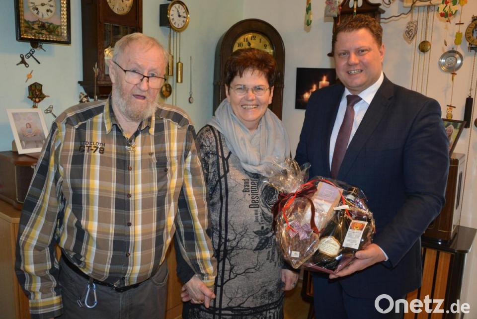 Zweiter Bürgermeister Stefan Grillmeier überbrachte die Glückwünsche der Stadt und überreichte einen Korb mit regionalen Spezialitäten. Grillmeier wünschte dem Paar noch viele gemeinsame Jahre.