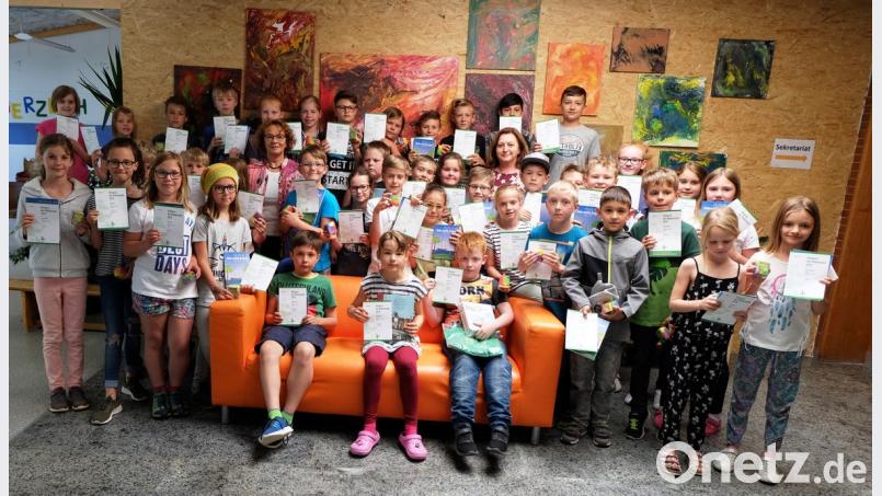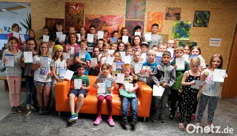In den dritten und vierten Klassen der Grundschule Mitterteich wurde auch heuer wieder erfolgreich geknobelt, gerechnet und geschätzt: Die Buben und Mädchen haben erneut am internationalen Wettbewerb "Känguru der Mathematik" teilgenommen. Zwei Kinder aus den dritten Klassen, René Radwer und Nina Neubauer, erreichten einen zweiten Preis auf Bundesebene und dürfen sich über einen Salzroboter und ein Sachbuch freuen. René gewann außerdem den Preis für den "weitesten Kängurusprung", also die längste Kette von richtigen Antworten. Aus den vierten Klassen erknobelte sich Bastian Krieger einen dritten Bundespreis und erhielt ebenfalls ein Buch. Eine Urkunde und einen kleinen Preis gab es für alle Teilnehmer. Die einzelnen Platzierungen in den dritten Klassen: 1. René Radwer (3/4-Kombi), 2. Nina Neubauer (3b), 3. Lara Blechinger (3a), 4. Hanna Wiesner (3b), 5. Philipp Burger (3b). Die Platzierungen in den vierten Klassen: 1. Bastian Krieger (4a), 2. Lea Fischer (4b), 3. Sarah Piekacz (4a), 4. Lea Kutzer (4b), 5. Sofia Häckl (4b). Im Bild alle Teilnehmer mit Rektorin Renate Zuber und Helga Pötzl (hinten, von rechts) - Letztere hat die Kinder während des Wettbewerbs betreut. Bild: exb