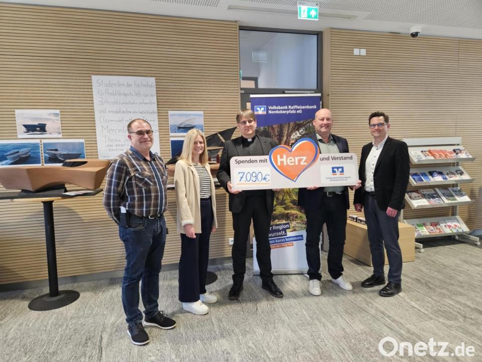 Jetzt waren Pfarrer Oliver Pollinger, Kirchenverwaltungsvorstand Wolfgang Kreger und Kirchenverwaltungsmitglied Daniela Malzer in der Mitterteicher Filiale der VR-Band und nahmen dort eine Spende in Höhe von 7.090 Euro entgegen. Ziel des Projekts war es, die laufende Renovierung der Leonberger Pfarrkirche St. Leonhard zu unterstützen. Zahlreiche kirchliche Vereine und Privatpersonen beteiligten sich tatkräftig und sorgten so für das beachtliche Ergebnis.