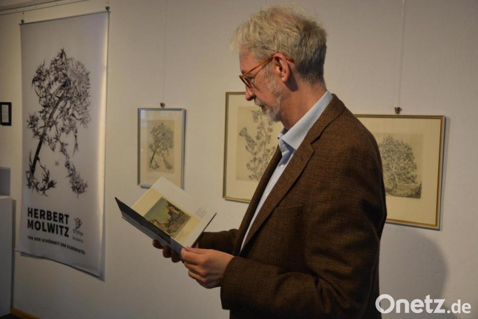 Manfred Knedlik informierte, dass die Stadt Mitterteich im Besitz von rund 120 Kunstwerken von Herbert Molwitz sei. Eine Vielzahl dieser Werke könne jetzt in dieser Dauerausstellung bewundert werden. Dazu zählen Bildern und Skizzen ebenso wie Post- und Grußkarten, persönliche Aufzeichnungen und Kupferdruckplatten. Knedlik berichtete, dass er sich seit dem Jahr 2000 intensiv mit der Kunst von Herbert Molwitz beschäftigt habe. Ende 2020 brachte er das Buch "Herbert Molwitz - Vom künstlerischen Reiz des Unauffälligen" heraus, das nach wie vor zum Preis von 12,90 Euro bei der Stadt Mitterteich und den örtlichen Bankfilialen erhältlich ist. Knedlik sei im Zuge seiner Recherchen in engem Kontakt mit der Familie Molwitz gestanden und habe intensive Gesprächen mit Molwitz-Sohn Dittrich geführt.