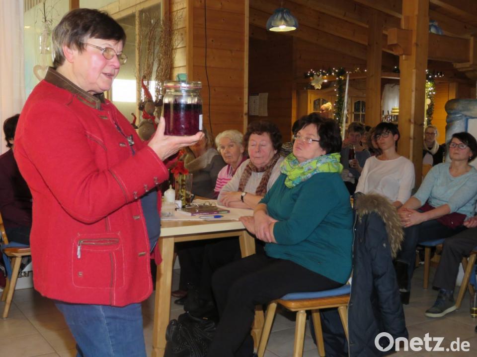 Dabei seien es nicht nur die Aromen der Kräuter, die so manches "Restessen" aufpeppen könnten. Das Wertvolle seien die Heilkräfte. So sprach sie zum Beispiel der Zwiebel eine "Heilwirkung von der Zehenspitze bis zur Haarwurzel" zu. Viele Zuhörerinnen reagierten erstaunt, als Guthjahr vom Wildschnittlauch sprach, der bereits ab Dezember in der Nähe von Obstbäumen wachse.